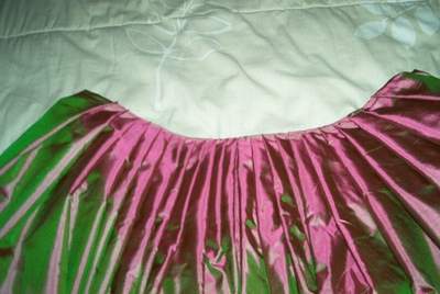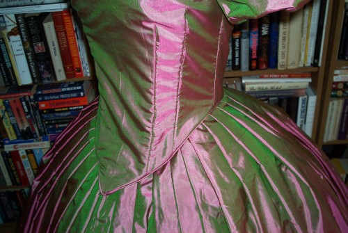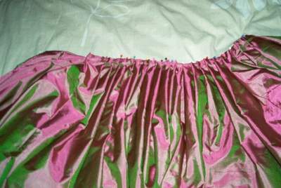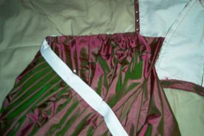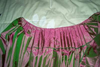 The pleating basted. I ended up having to redo a little after this picture, since it fit around my waist perfectly and I still had almost an entire panel to gauge!