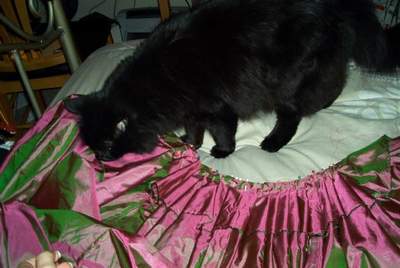 The waistband being sewn on. I used cotton organdy since it's lightweight and quite strong. Also, another view of the skirt, with Koshka investigating. I think it gives a good view of the skirt too :)